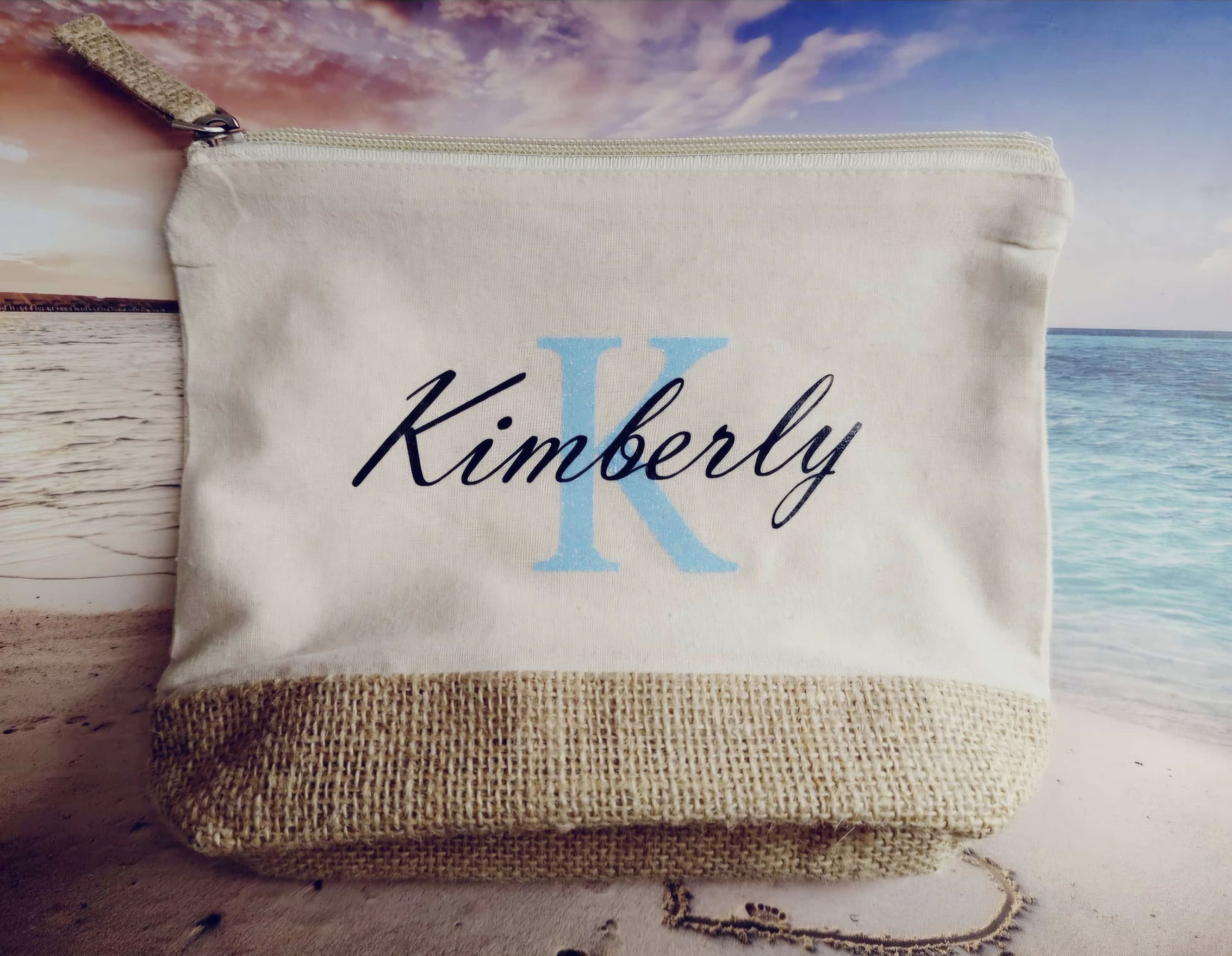 Precioso neceser de yute y algodón ideal para regalar en cualquier ocasión.